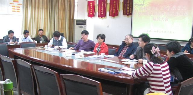 3月25日中午,按照学院党委关于开展党的群众路线教育实践活动的总体安排,信息与汽车工程系党总支在励能楼B201会议室召开了深入开展党的群众路线教育实践活动动员大会,对我系党的群众路线教育实践活动进行全面动员和部署。学院工会主席左利利,学院群众路线教育实践活动督导组组长、纪检监察室处长车文波,我系全体教职工和在校学生党员参加了会议。会议由系党总支副书记欧巍主持。