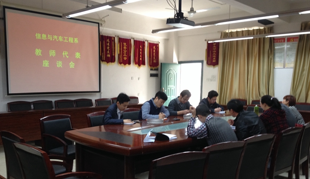 下午1时30分,首先召开教师代表座谈会。参加这次座谈会的有系主任龙超、副书记欧巍、副主任党伟华、各教研室主任,及张田、李高峰、曾新洲等教师代表。座谈会上老师们对系部的教育教学工作进行探讨分析,对工作中出现的问题提出意见和建议;讨论了各岗位人员的分配情况,探讨了系部制度的完善,系部网站信息的及时更新等问题;对党的群众路线教育实践活动开展提出了宝贵的意见等。座谈会上老师们提出来的意见和建议,我系领导班子做好记录并一一答复。